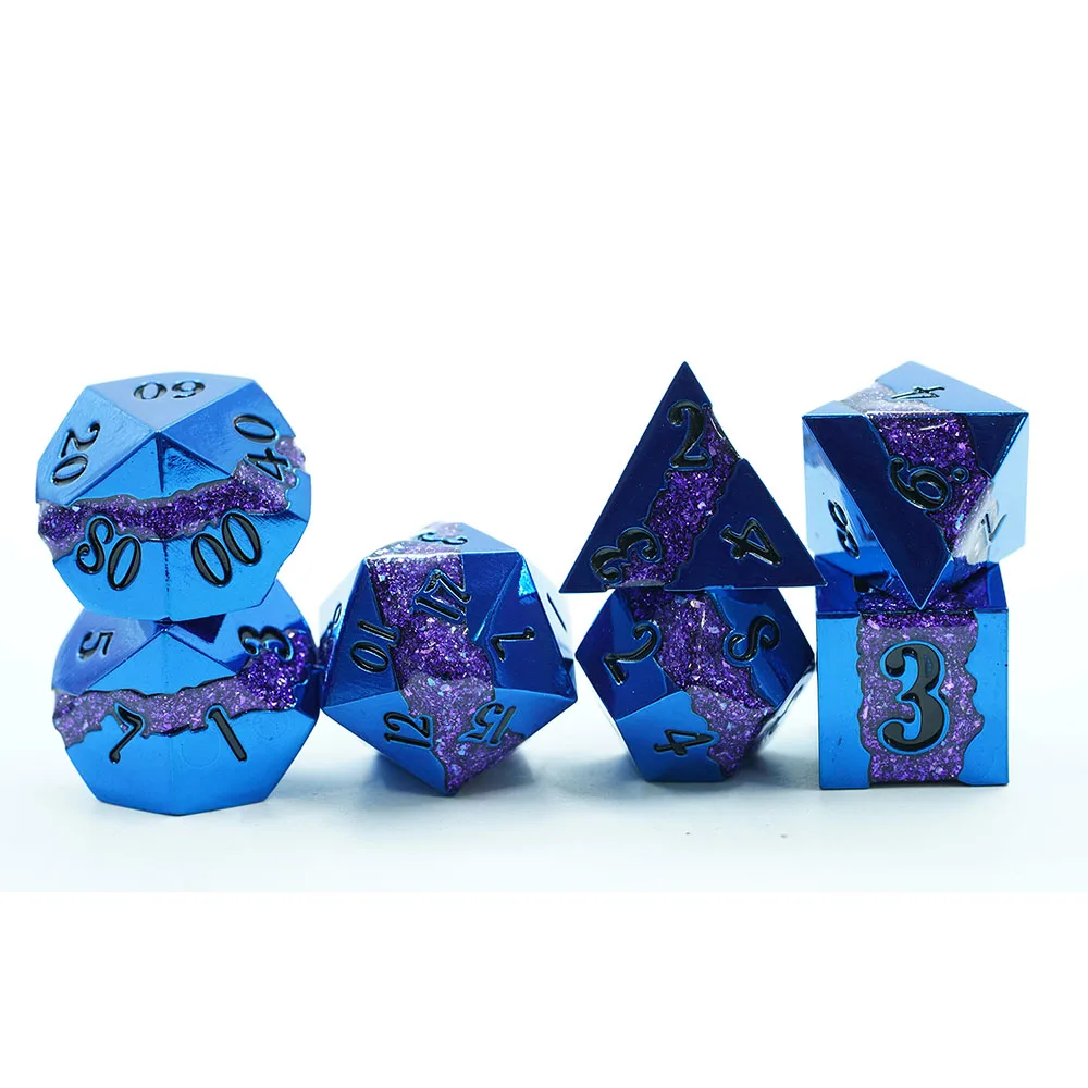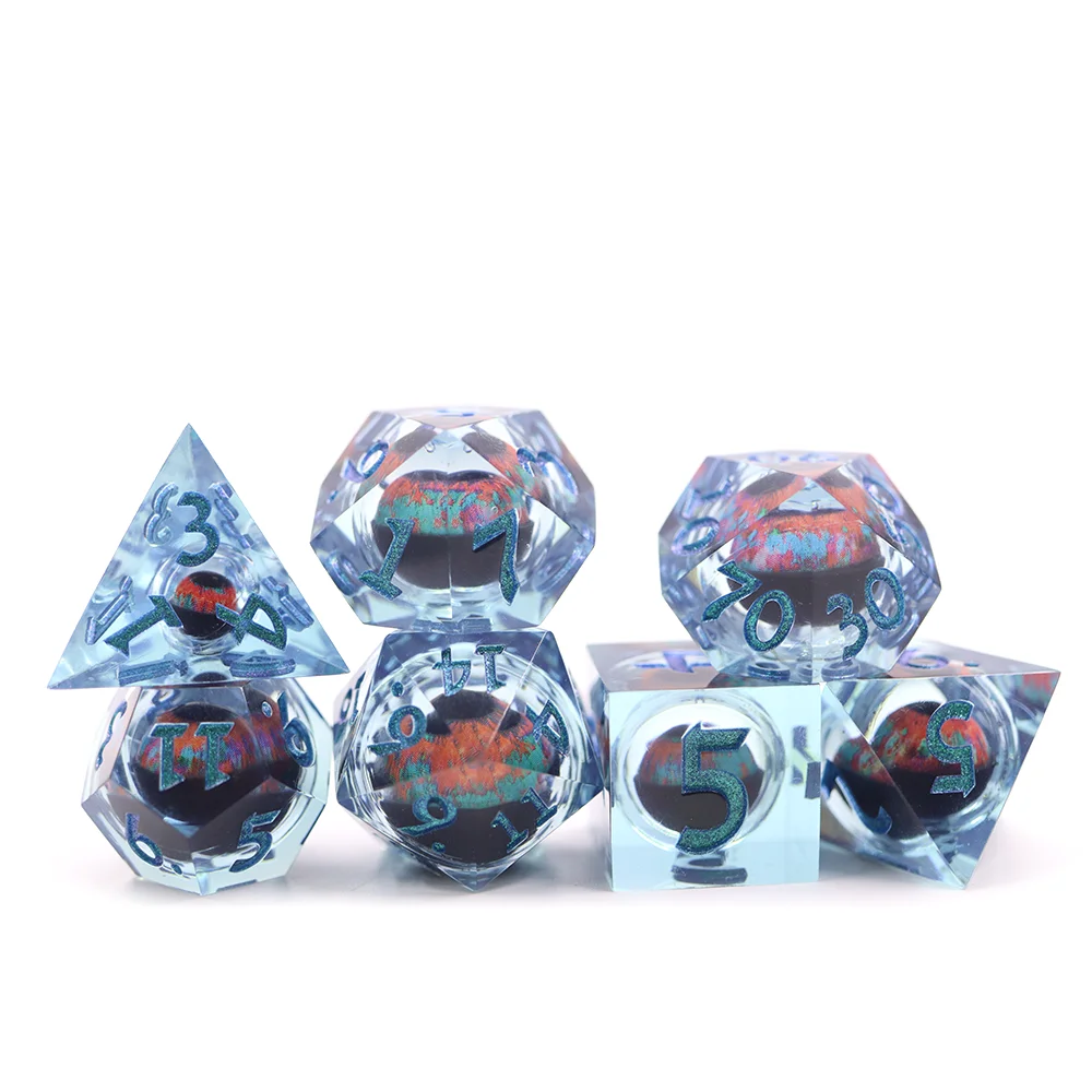 7 peces de daus de resina amb purpurina polièdrica RPG per a Dungeons and Dragons amb vora afilada i nucli líquid per a jugadors de D&D