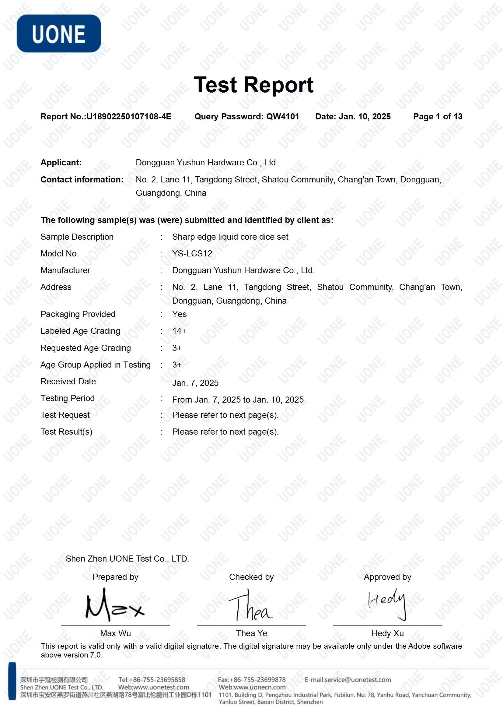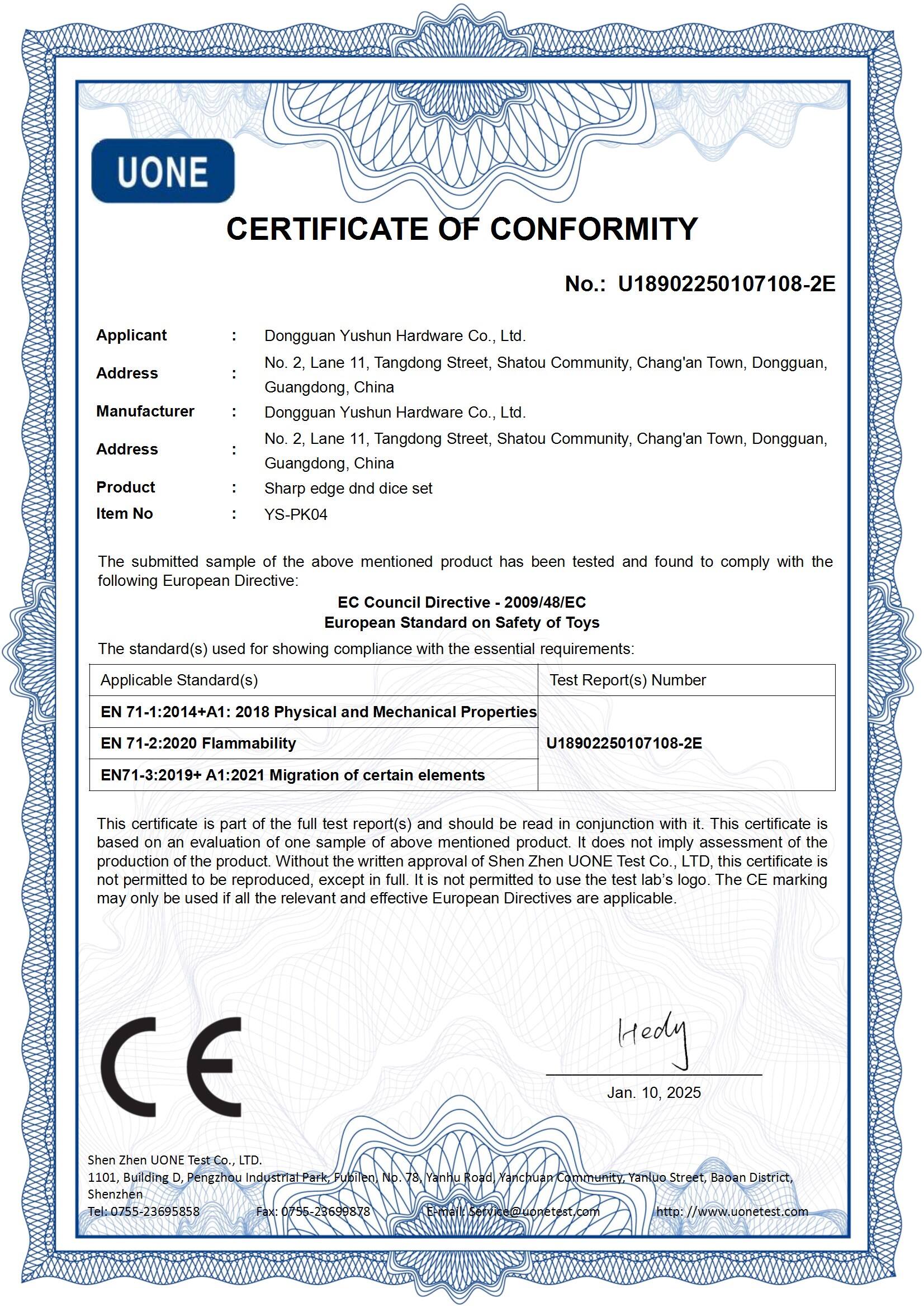 Dongguan Yushun Hardware Co., Ltd yang didirikan pada tahun 2018, adalah sebuah pabrik yang memproduksi berbagai jenis dadu logam RPG DND, dadu akrilik, dadu resin dan dadu kayu...